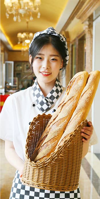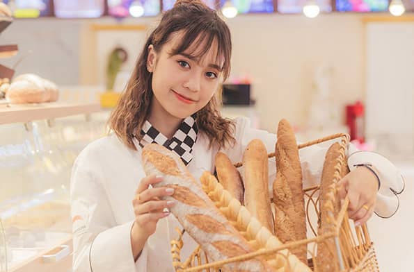 牛角面包、北海道吐司等丹麦面包、法式长棍面包等 硬欧面包、巧克力雷神等软欧面包、意式提拉米苏等西式 甜点、咖啡饮品、乳酪蛋糕等。